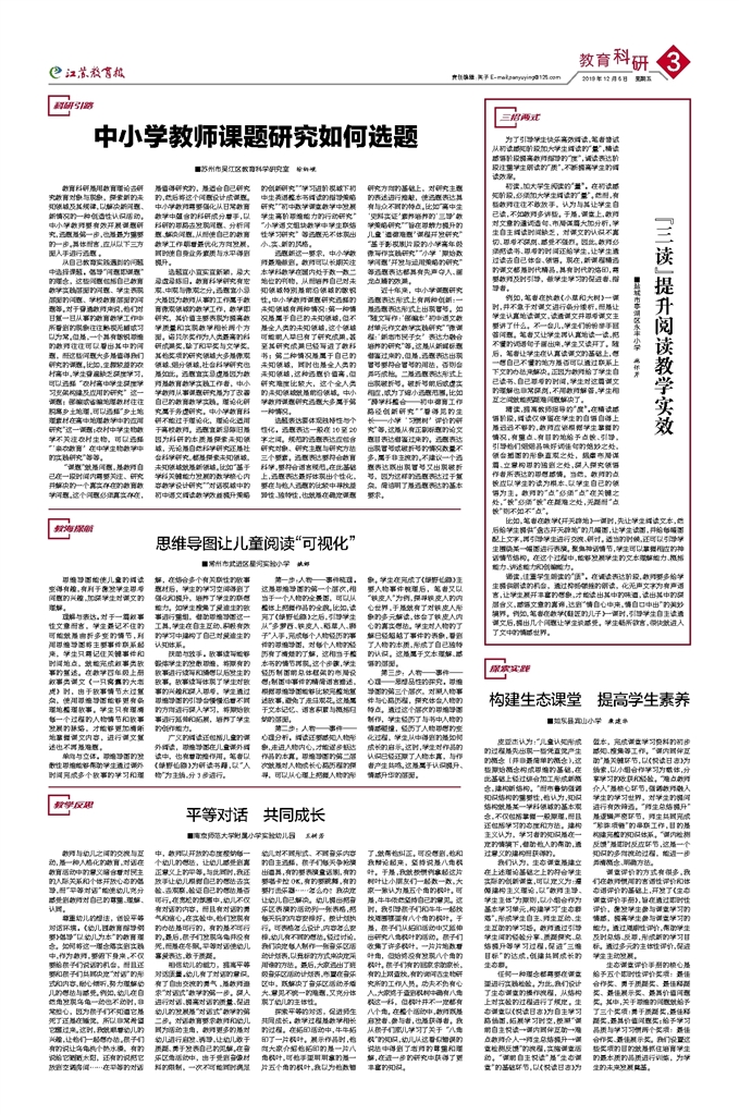 探索平等的对话,促进师生共同成长。教学过程是教学相长的过程。在拓印活动中,牛牛拓印了一片枫叶。展示作品时,他向大家介绍他拓印的是一片八角枫叶,可他手里明明拿的是一片五个角的枫叶,我以为他数错了,就帮他纠正。可没想到,他和我辩论起来,坚持说是八角枫叶。于是,我就按惯例拿起这片树叶让小朋友们一起数一数,大家一致认为是五个角的枫叶。可是,牛牛依然坚持自己的意见。这时,我引导孩子们和牛牛一起找找周围哪里有八个角的枫叶。于是,孩子们从拓印活动中又延伸出研究八角枫叶的活动。孩子们收集了许多枫叶,一片片地数着叶角,但始终没有发现八个角的枫叶。孩子们有的回家求助家长,有的上网查找,有的询问古生物研究所的工作人员。功夫不负有心人,大家终于查到枫树中确有八角枫这一科,但枫叶并不一定都有八个角。在整个活动中,教师既是启发者、参与者,也是获得者。我从孩子们那儿学习了关于“八角枫”的知识,幼儿从这看似错误的说法中得到了老师的尊重和理解,在进一步的研究中获得了更丰富的知识。