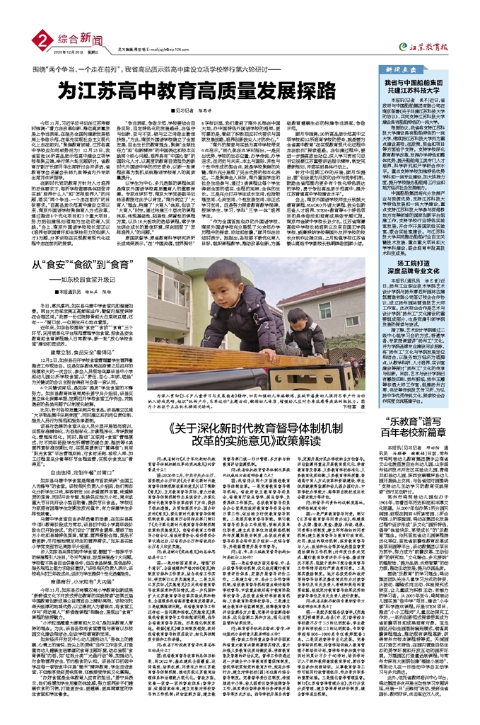 今年11月,习近平总书记在江苏考察时强调:“着力在改革创新、推动高质量发展上争当表率,在服务全国构建新发展格局上争做示范,在率先实现社会主义现代化上走在前列。”聚焦教育领域,江苏各高中学校应如何顺势而为?12月25日,我省首批20所高品质示范高中建设立项学校相聚云端,举行第六轮主题研讨。省教育厅副厅长顾月华出席研讨会并讲话,省教育学会名誉会长杨九俊等省内外专家出席并点评指导。