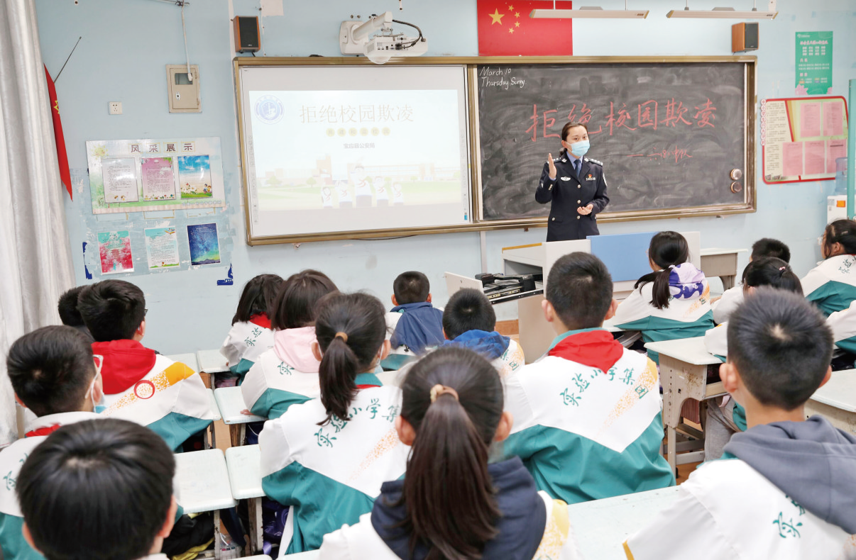 第27个“全国中小学生安全教育日”来临之际,宝应县公安局组织民警走进辖区中小学,开展“拒绝校园欺凌 共建和谐校园”法制进校园主题活动,通过讲解预防校园欺凌知识、模拟校园欺凌场景、安全防范互动交流等方式,教育引导学生们在日常生活中增强法律意识,提高自我保护能力。