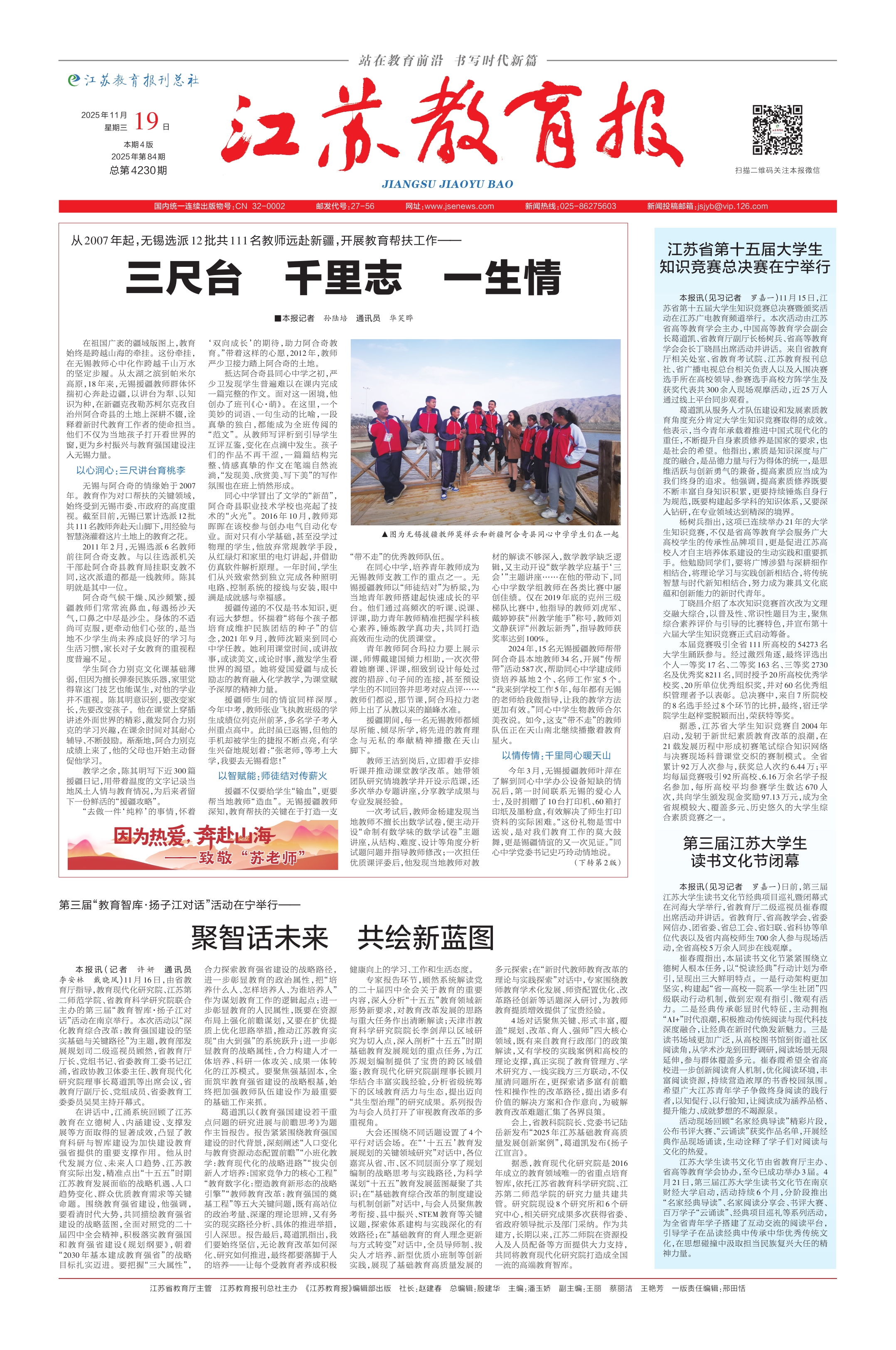 本报讯(见习记者 罗嘉一)11月15日,江苏省第十五届大学生知识竞赛总决赛暨颁奖活动在江苏广电教育频道举行。本次活动由江苏省高等教育学会主办,中国高等教育学会副会长葛道凯、省教育厅副厅长杨树兵、省高等教育学会会长丁晓昌出席活动并讲话。来自省教育厅相关处室、省教育考试院、江苏教育报刊总社、省广播电视总台相关负责人以及入围决赛选手所在高校领导、参赛选手高校方阵学生及获奖代表共300余人现场观摩活动,近25万人通过线上平台同步观看。