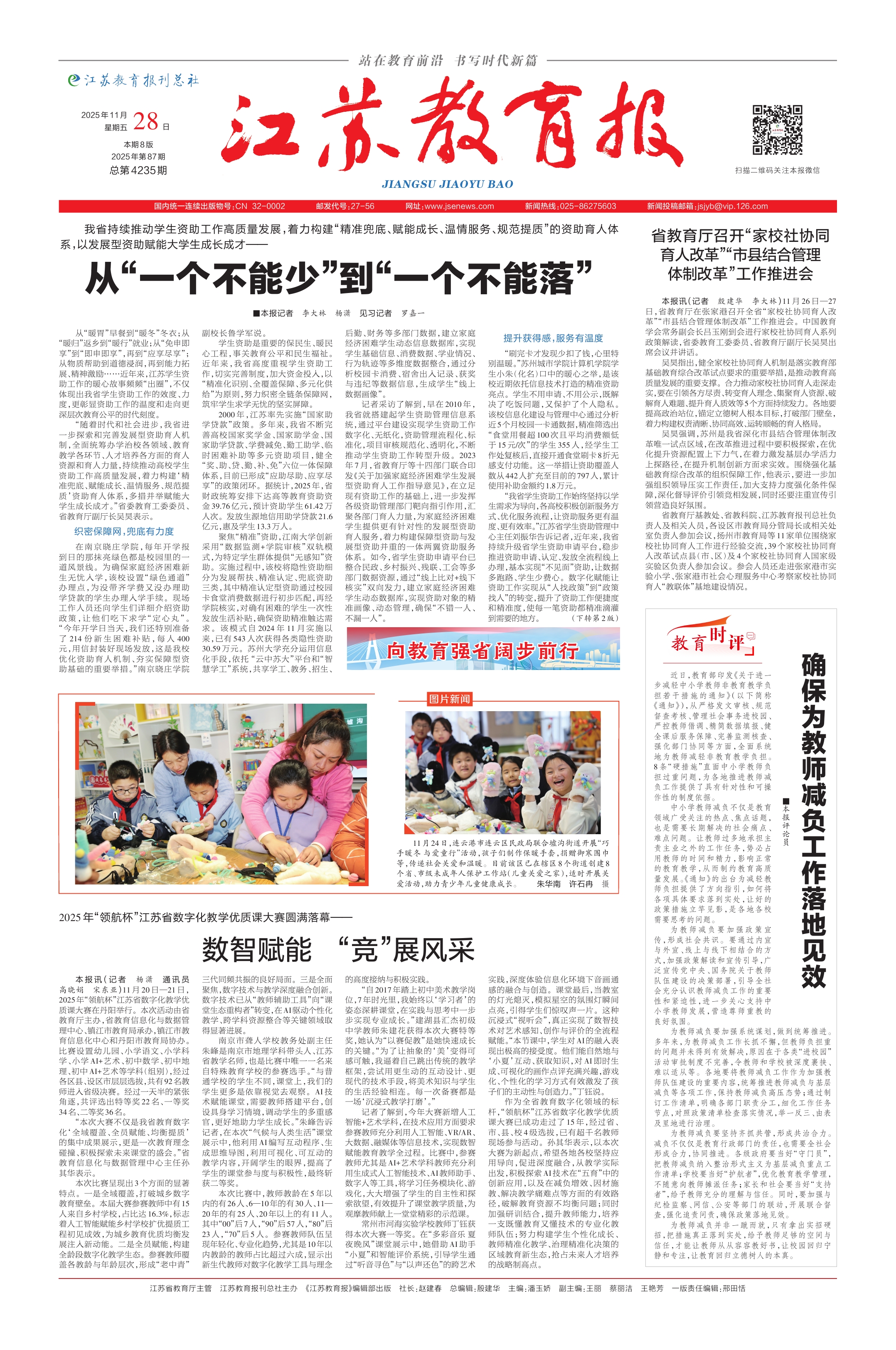 从“暖胃”早餐到“暖冬”冬衣;从“暖归”返乡到“暖行”就业;从“免申即享”到“即申即享”,再到“应享尽享”;从物质帮助到道德浸润,再到能力拓展、精神激励……近年来,江苏学生资助工作的暖心故事频频“出圈”,不仅体现出我省学生资助工作的效度、力度,更彰显资助工作的温度和走向更深层次教育公平的时代刻度。
