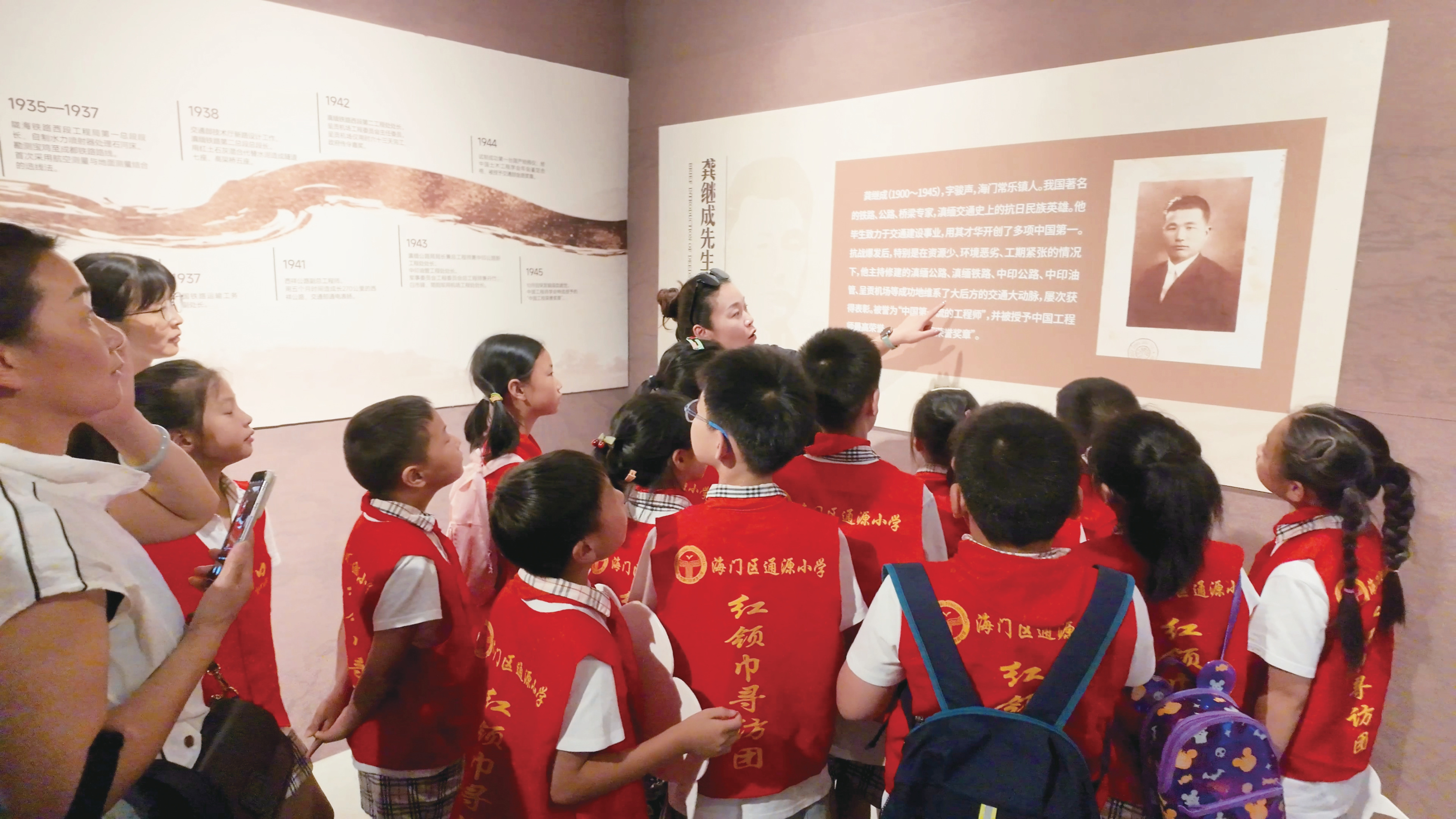 海门钟灵毓秀,人才辈出。先辈们的学识与精神,早已化作这片土地的基因,在一代代海门人的血脉中奔流不息。我带领学生参观坐落于海门区常乐镇的江苏省爱国主义教育基地张謇纪念馆,去张謇创办的颐生酒厂实地考察,到张謇故里常乐状元街游览,从多方面了解张謇先生艰苦创业、实业救国的一生,学习滋养了一代又一代海门人的张謇精神。我们还去了海门临江新区卞之琳艺术馆、海门港新区董竹君纪念馆等地,在实践活动中追寻海门的名人足迹,从先贤身上汲取精神力量。